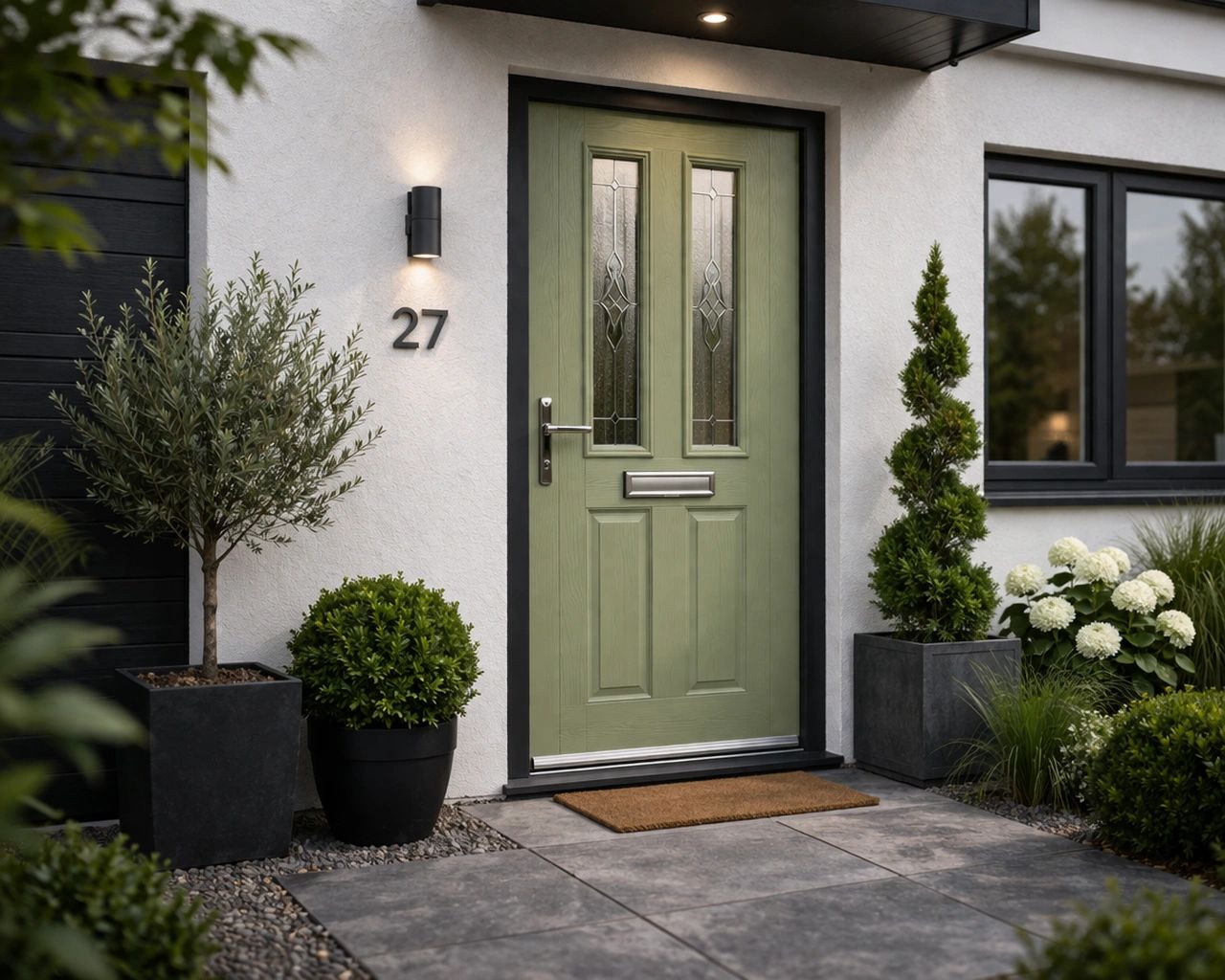 You can personalise your composite door with a variety of glazing styles, including decorative, frosted, and patterned glass.